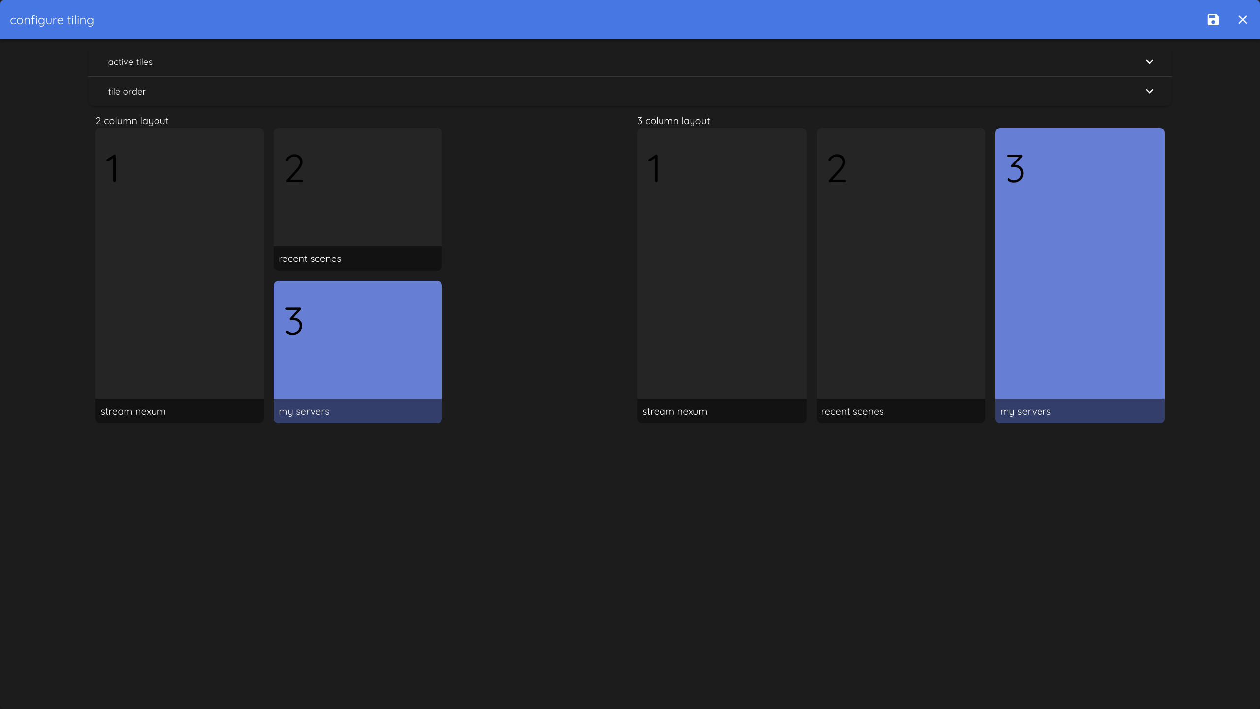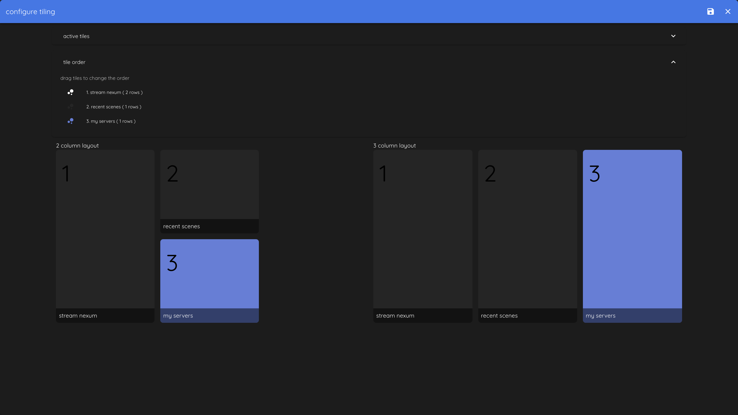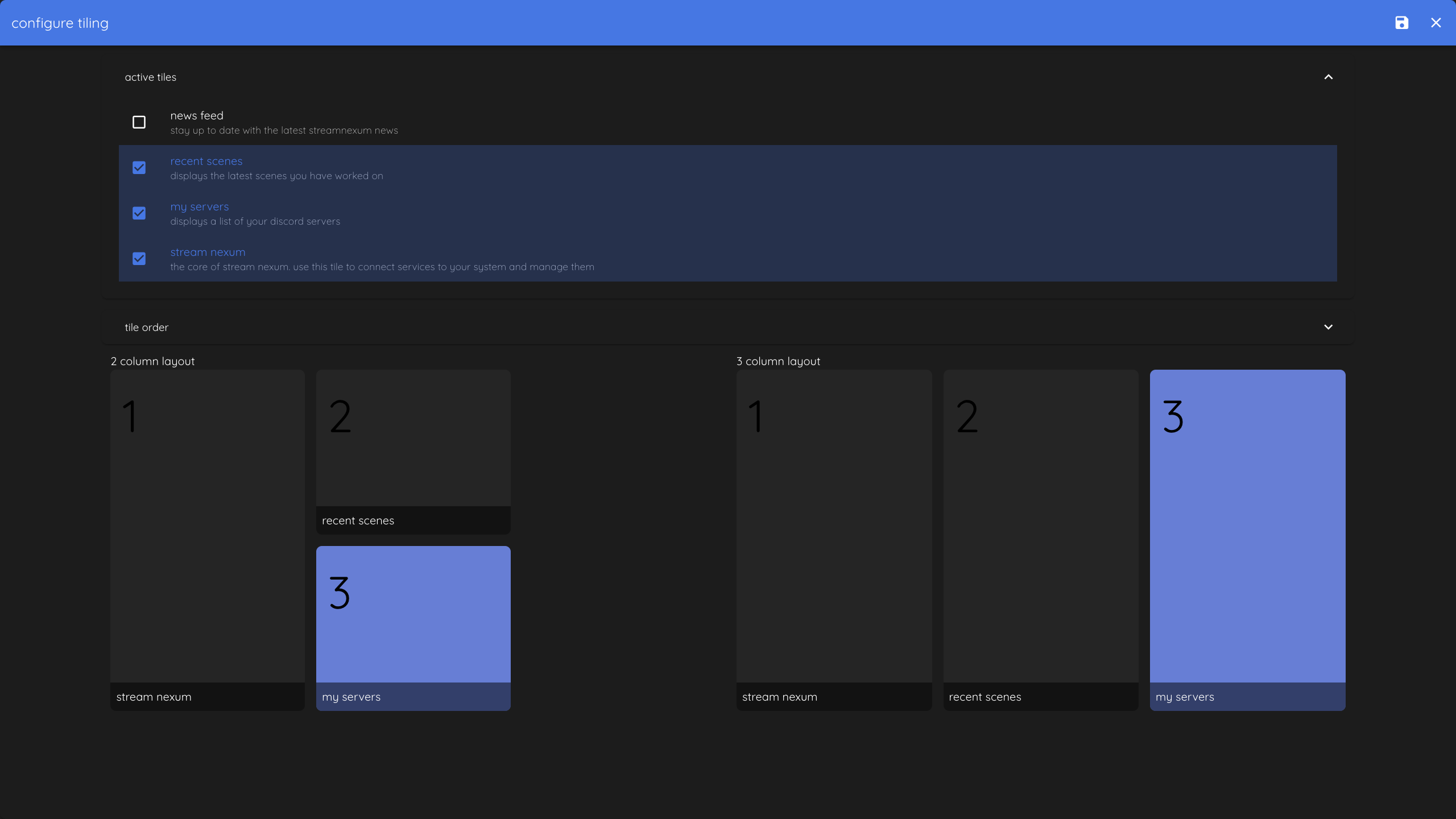 Since the tile "my servers" tile is only available after connecting your Discord account with stream nexum, your dashboard and the list of active tiles may differ from the one shown in this guide.