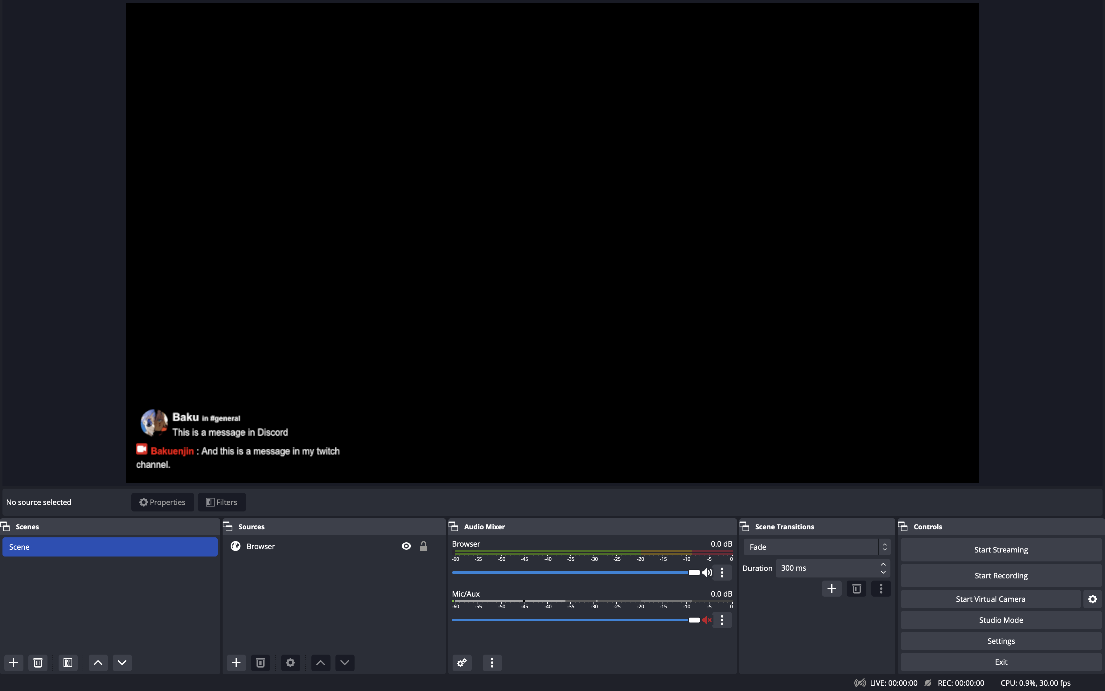 After everything is set up, switch to the specified Discord and Twitch channels and write some text messages. You should see them appearing in your stream now.