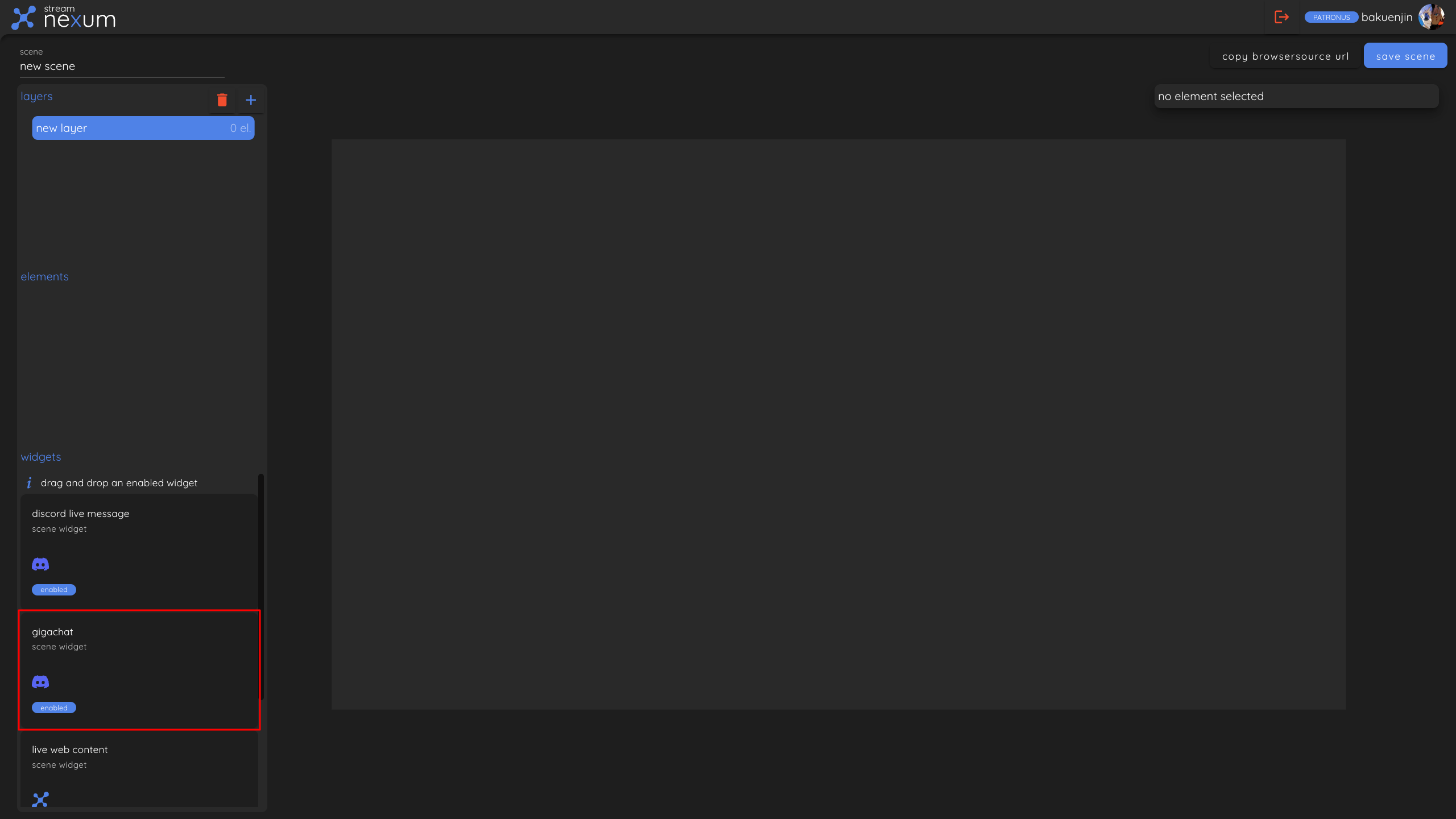 To use the Gigachat feature, you need to add it to a scene first. If you are unsure how to setup a scene or how to add it to OBS, please check our Creating Scenes and The Scene Editor guides.