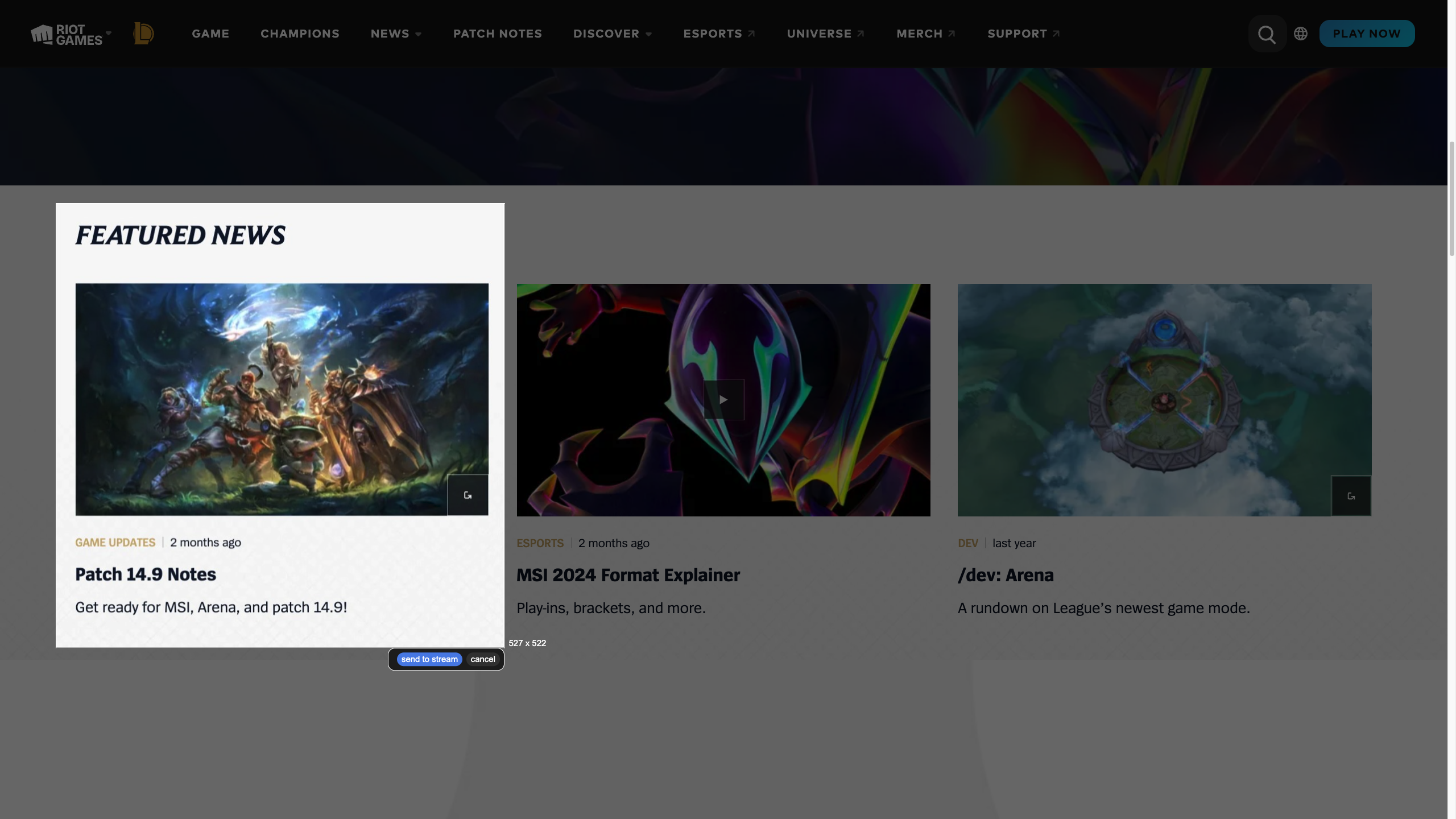 Press the shortcut you picked for sending a screenshot. The entire website darkens and you can now draw the area you want to share. It should look somewhat like this: